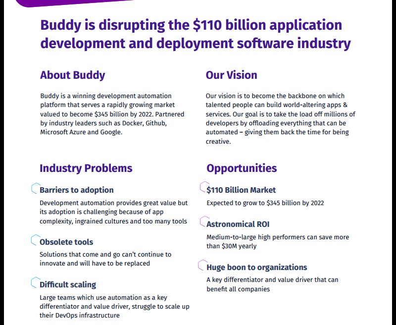 - This will also encourage developers to automate their development and deployment processes and Buddy’s automation process/algorithms could also be run within local and private hardware environment.