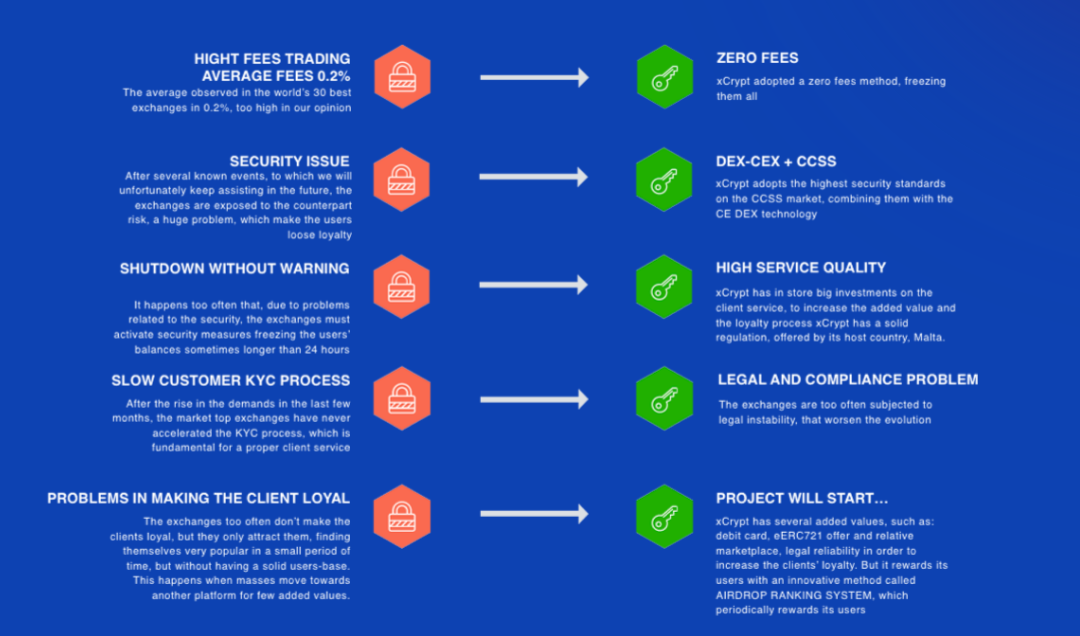 Many created crytocurrency exchanges in today's world are only after their team/owner pocket as they do not care about what users are facing and has lead to multiple exchange downfall. Lots of exchanges has also suffered the issue of security. Has we all known that security is a very important part of a platform and without a high standard level of security the platform is vulnerable to attacks and hacks. This has kept traders in a bad shape and has made many loss interest in the crypto space. These is why XCRYPT is here to solve this problems and bring forth the best in cryptocurrency exchange. XCRYPT aim to use it created cryptocurrency exchange to deliver traders with freedom and reliability to making them make more profits.