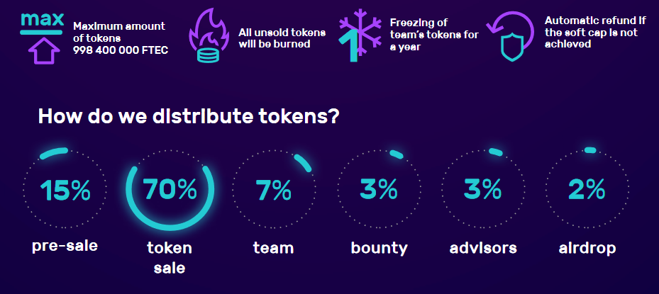 FTEC is an ERC-20 token based on a system of smart contracts. 998400000 FTEC token will be released in total.