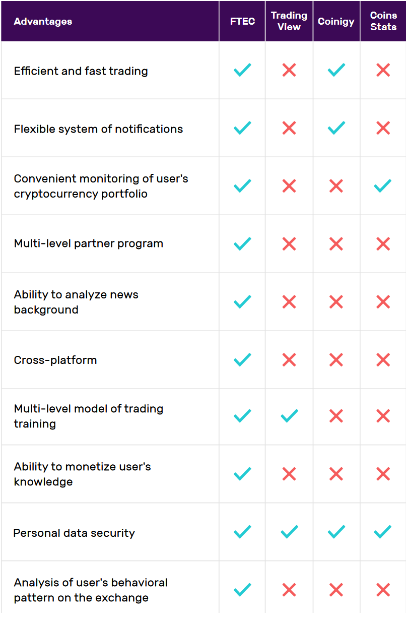 Let's look at a comparison table of features provided by the most popular competing services of FTEC:
