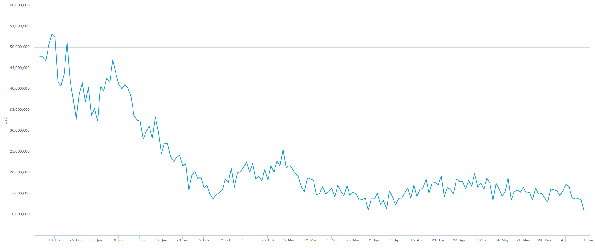 Considering the recent drop in Bitcoin price, this is not surprising.
