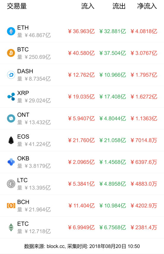 今日ETH持续稳居资金流入榜首,净流入4.0818亿元;“风向标”BTC稳居第二,净流入3.0767亿元;今日资金净流出榜首为CAC,净流出5897.8万元,第二名为BIX,净流出3058.1万元。