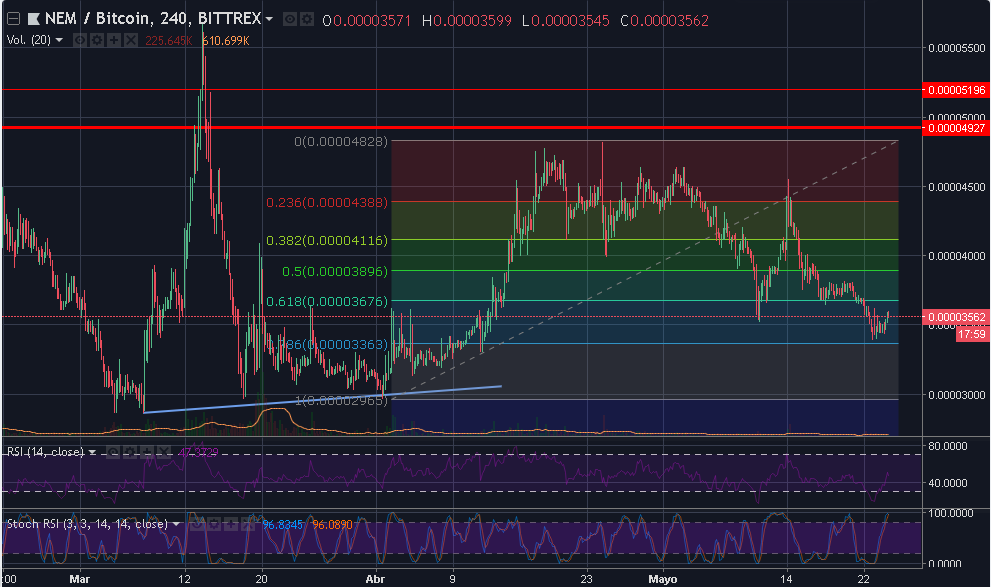 This evening we will analyze the cryptocurrency NEM, behave as we predicted in our previous post, https://steemit.com/cryptocurrency/@chepexx/nem-21-05-2018 and this may be a good time to collect profits.