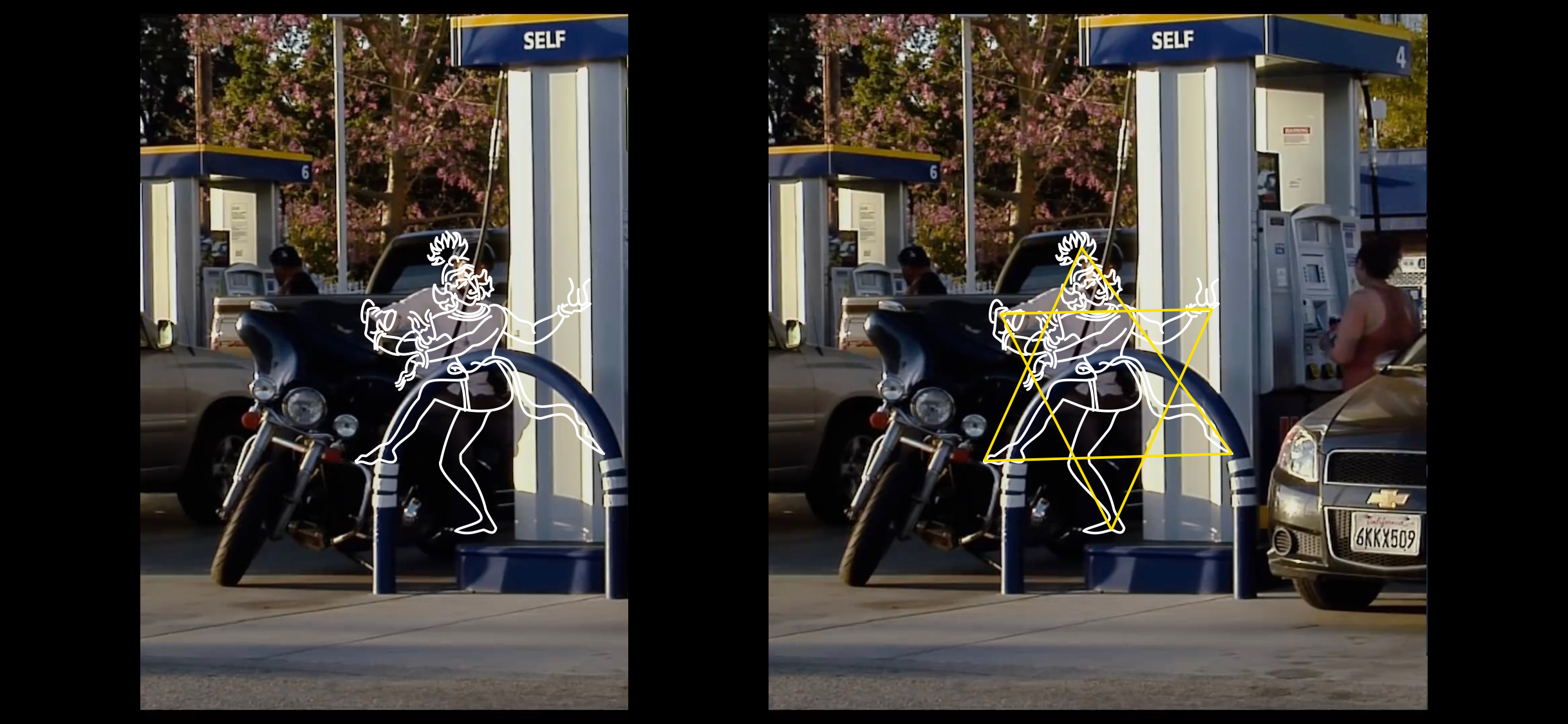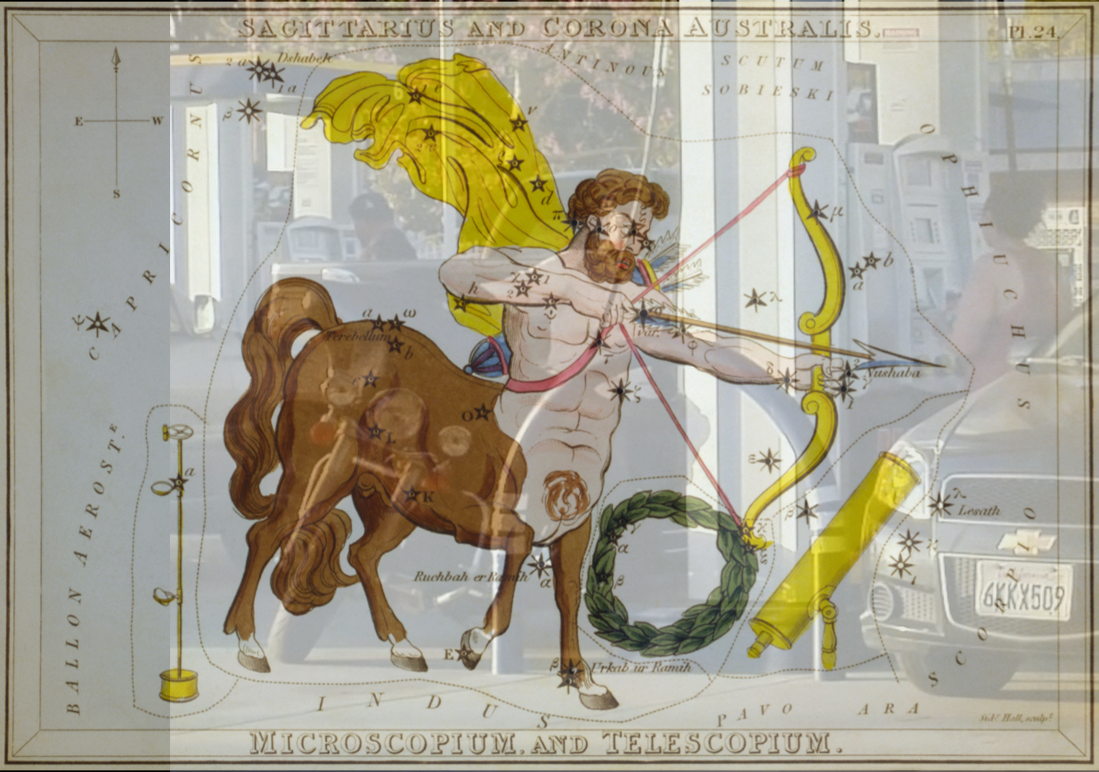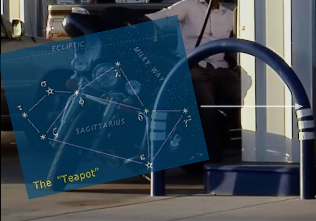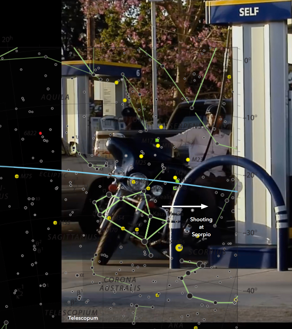 Here we line up Sagittarius with the motorcycle frame bars. You get a Sag shooting at Scorpion.