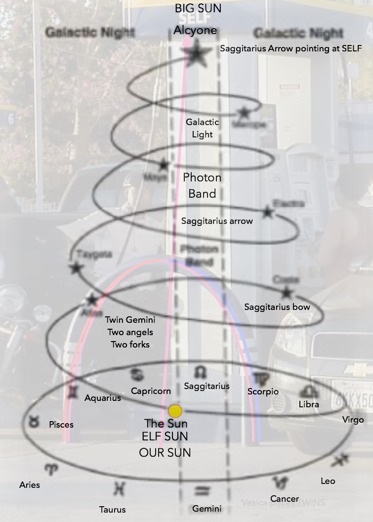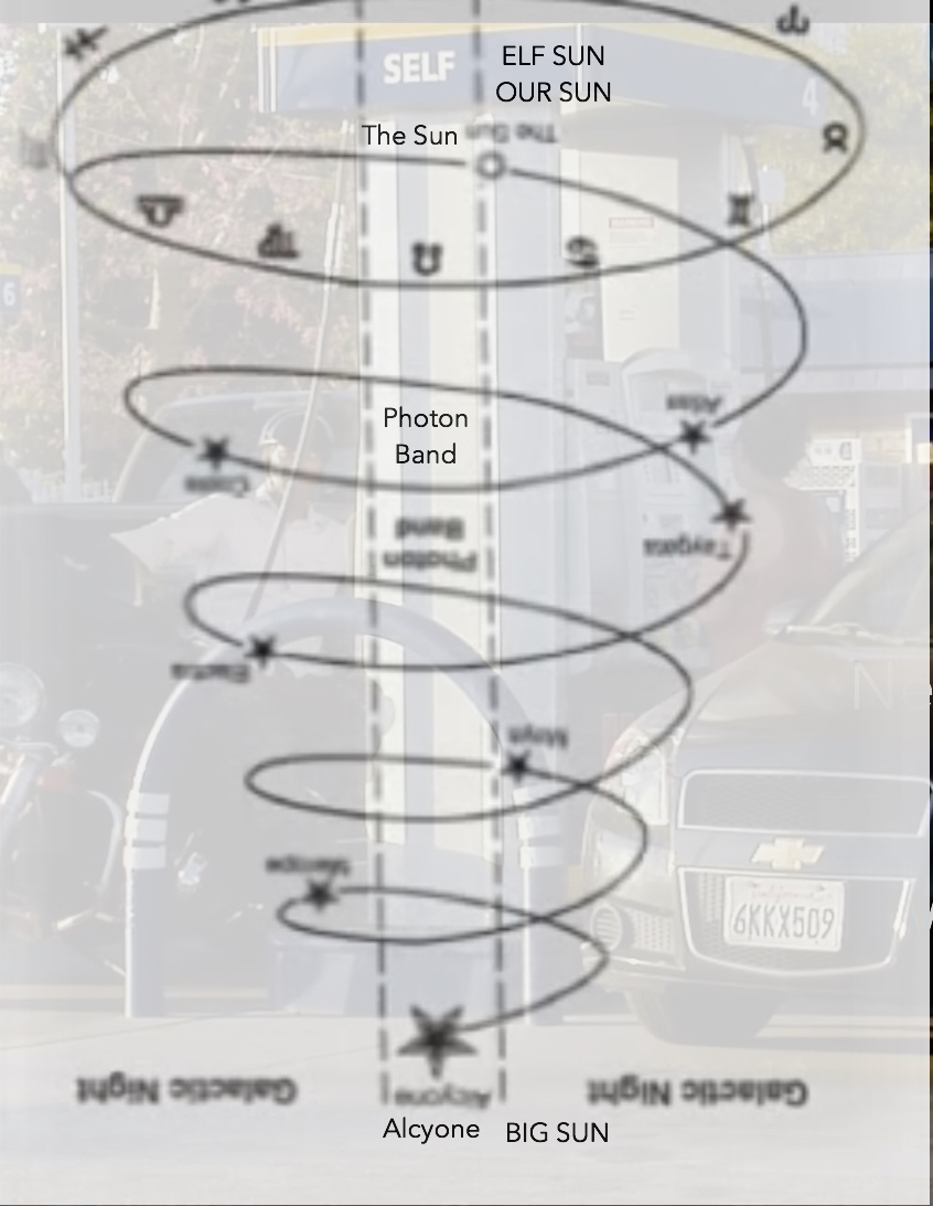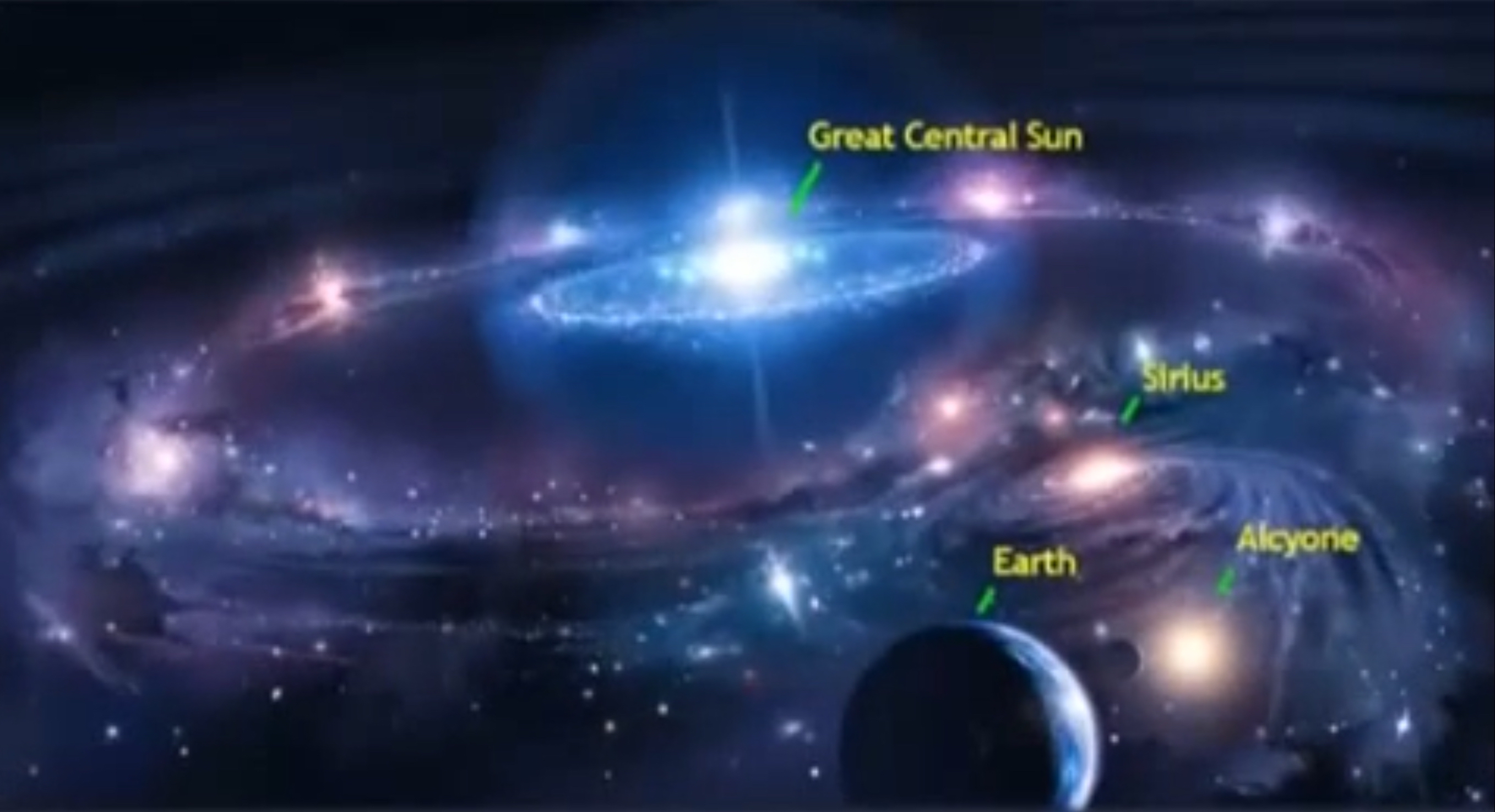 The Milky Way galaxy, in reference to our sun, our grand-sun Alcyone, and our Great-grand-sun Sirius.