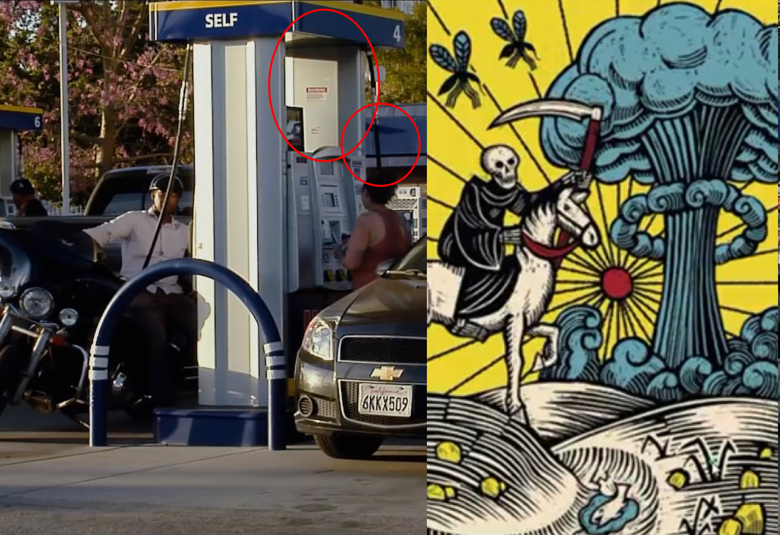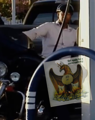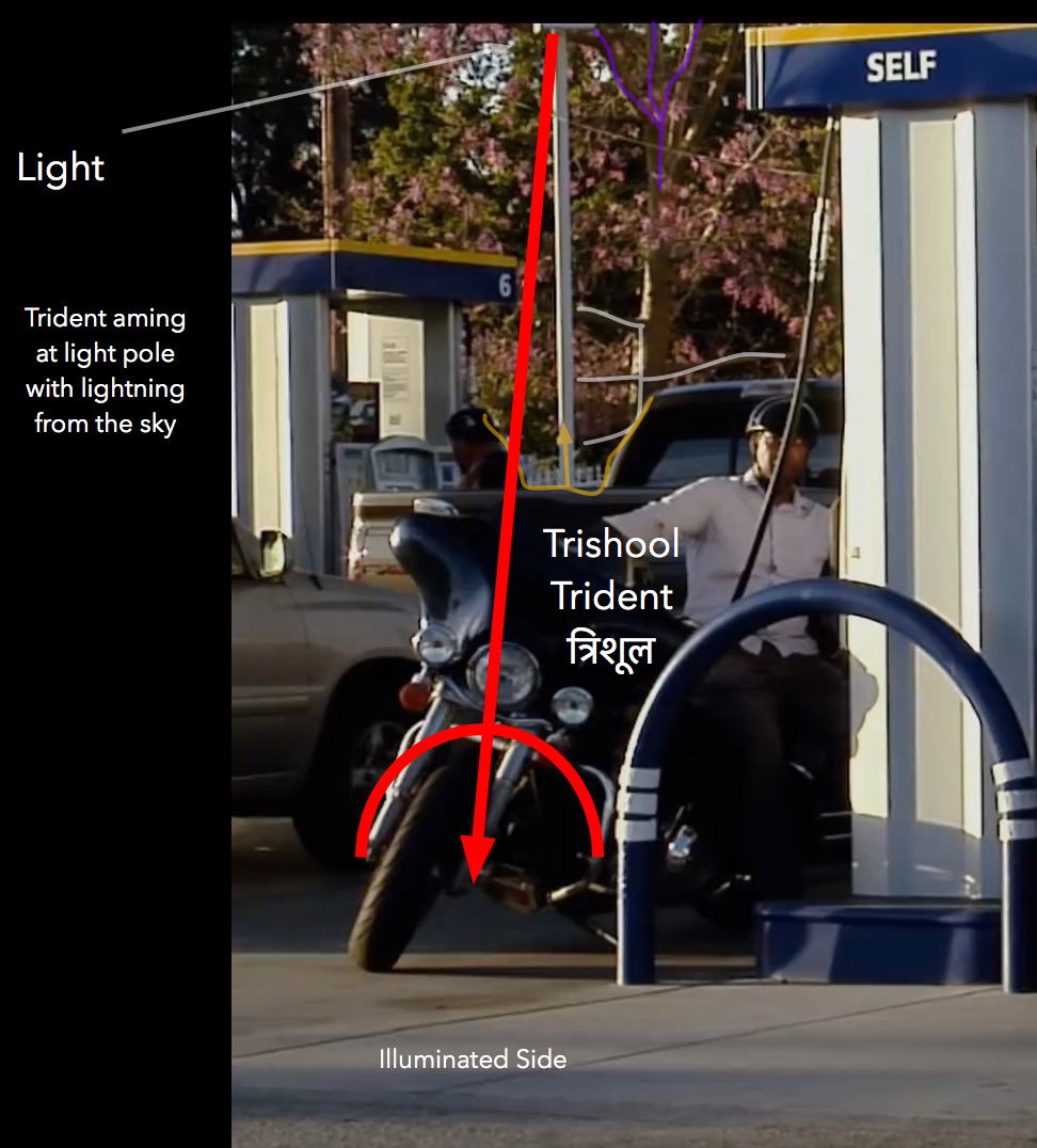 Notice that the the motorcycle looks a little bit like an alien. This is implying that Shiva, and other alien beings are actually participating in this. It also clearly shows that Shiva is a being from the constellation Orion.