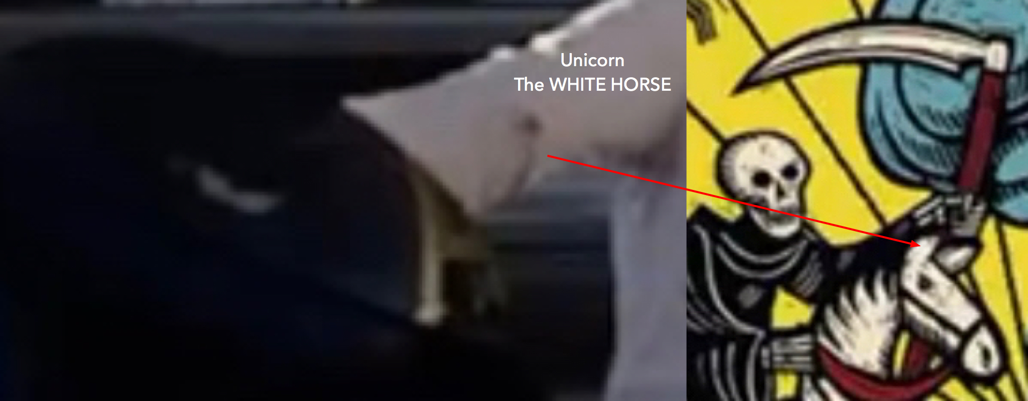 Now when you look at this image, it lines up neatly with the Death tarot card as shown in The Economist magazine in 2017. Notice the hammer axe thing pointing at both east and west.