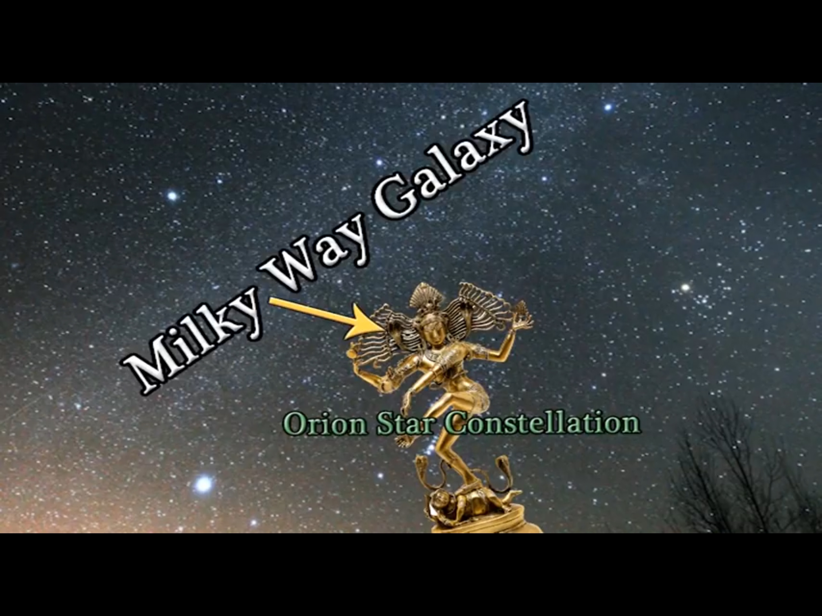 The snakes in the Shiva's hair represent the galactic light. You can see the center of the Milky Way lines up with the hair.