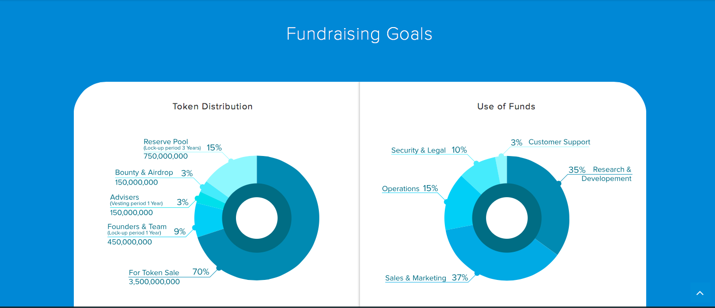 As I said at the beginning, Pre-Sale started on July 1, with the goal of collecting at least $ 2 million. Well, I wish good luck, because the cost of one token is ARAW = 0.01 USD. Distribute the funds received as a result of the campaign as follows: