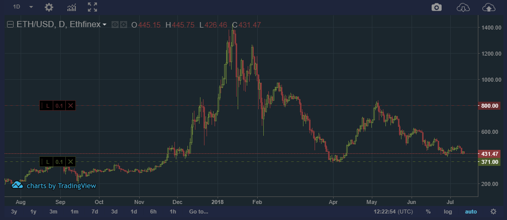 If the price of Etheruem falls outside of its usual price range, we will automatically buy when it hits the green line at $371 and execute an Auto sell, or Limit order at $800 if the price of Etheruem falls outside its upper range to close the trade for $429 profit. Crypto traders generally have many orders open at any one time.