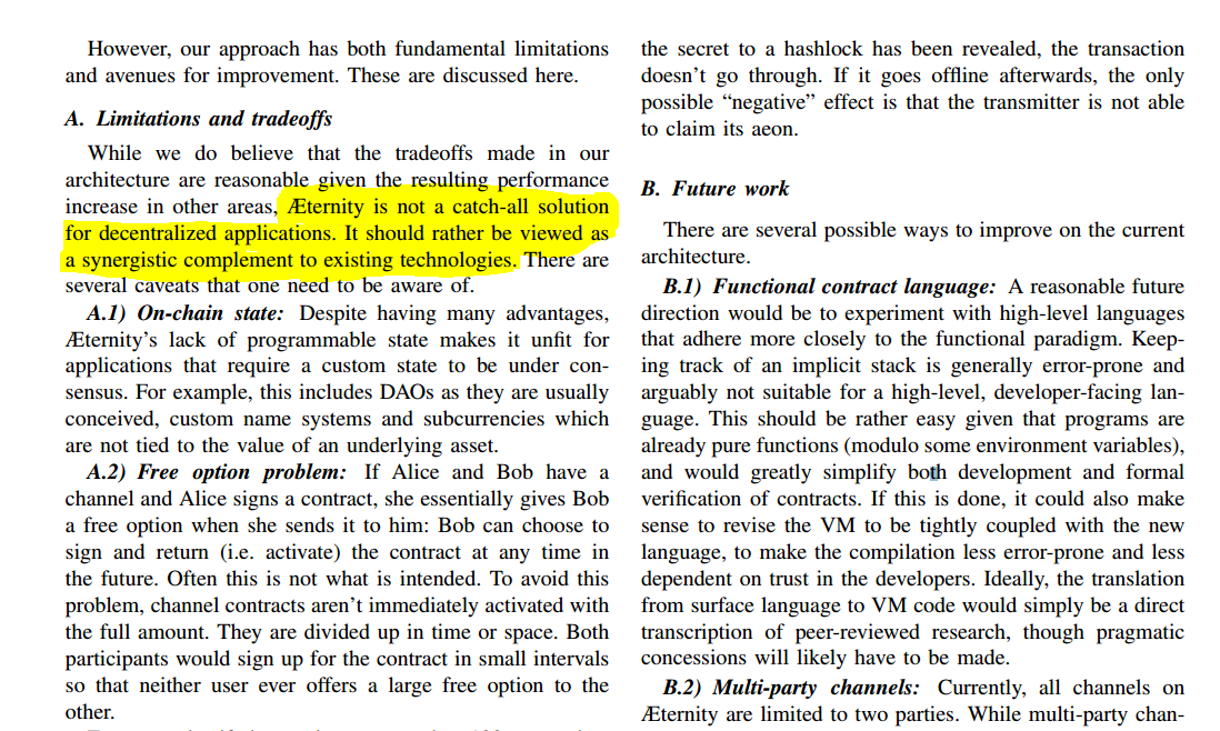 One thing I do like about this project is that at the end of their whitepaper, they write these words that “Aeternity is not a catch-all solution for decentralised applications. It should rather be viewed as a synergistic complement to existing technologies.”