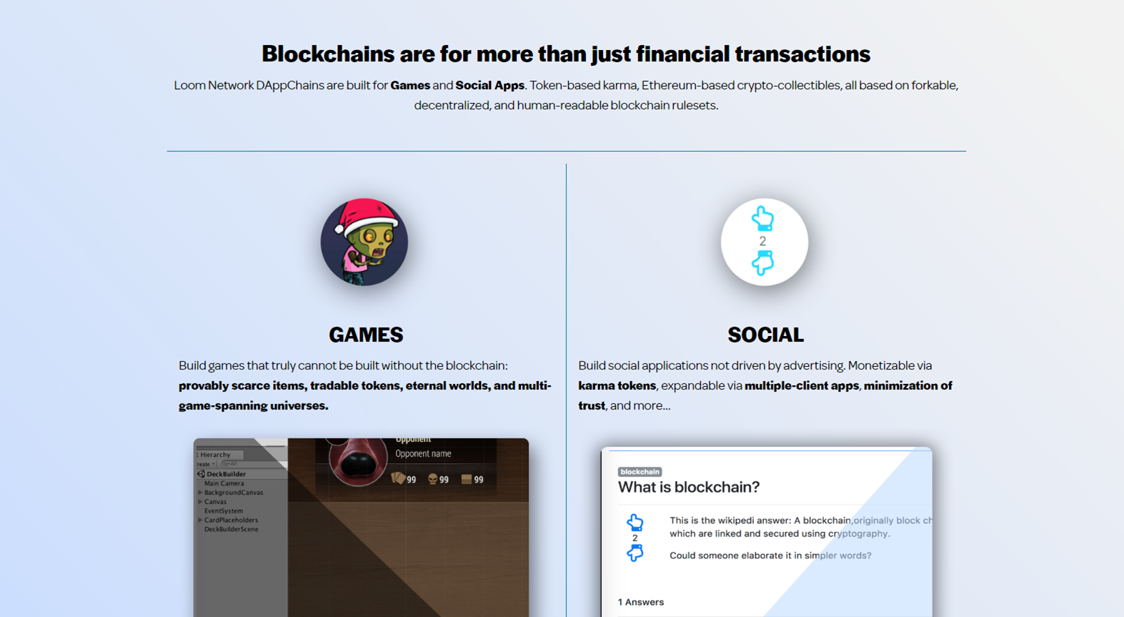 The Dapps that Loom is hoping to attract and build are games and social media applications.