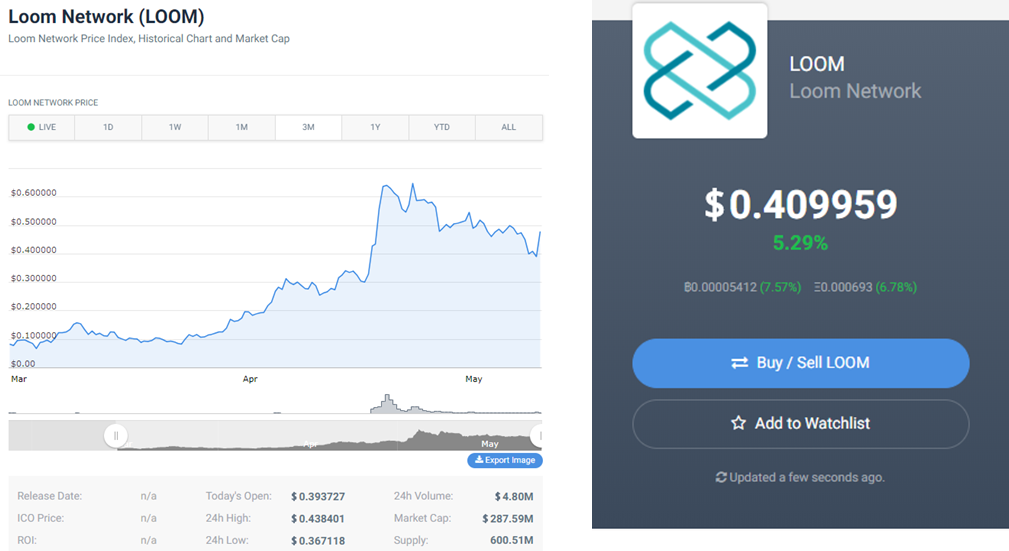 When Loom first opened on the markets in March they opened at $0.08. Currently they are sitting at $0.40. So they have 5x in 2 months. So this project definitely has momentum and attention. Given the upcoming events, if the market is good, I think this is a coin that will definitely show good returns.