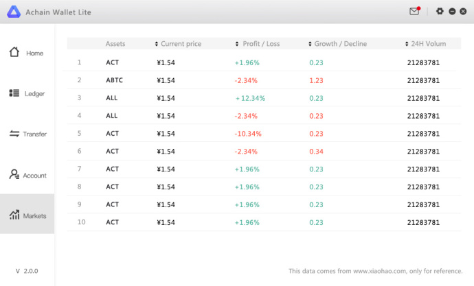 The Achain Wallet User Interface has been updated. Below is a list of changes that have been made.