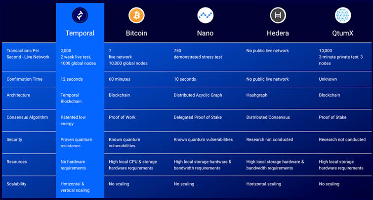 Temporal implements the innovative temtum consensus mechanism to further bolster the efficiency of the network. It promises to be more efficient than the others are because it uses a patented low energy formulation.