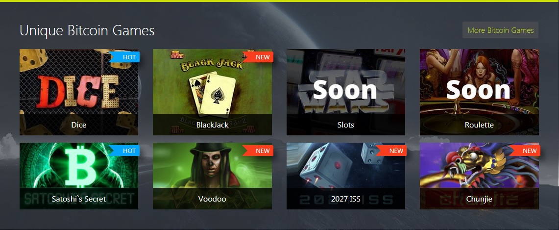 Some of the games offered on Bitdice Casino