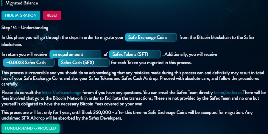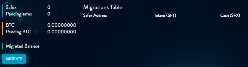 Again wait a few minutes and refresh, safex balance would become 0 but don't panic, wait a few more minutes and refresh again, and your migrated balance would appear under the migration table beside your old safex balance that should be 0 now