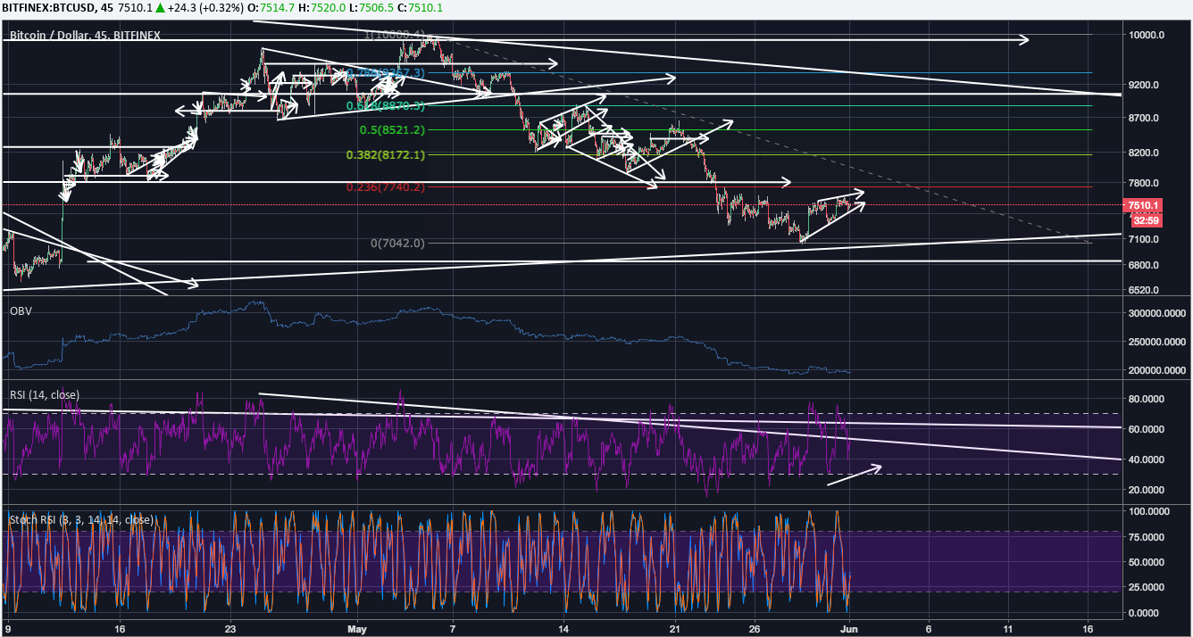 Bitcoin Short Term Margin Setupjuicemandan (25)in #cryptocurrency • 8 years ago Rising Wedge forming I have a sell stop set at 7360. I'm riding that down to 7125 with a moderate stop loss. Let me know what you think. #bitcoin