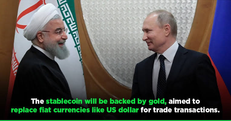 জানা গিয়েছে, ইরানের কেন্দ্রীয় ব্যাংক এবং রাশিয়ান সরকার একটি নতুন ক্রিপ্টোকারেন্সি চালু করার জন্য একসঙ্গে কাজ করছে যা স্বর্ণ-সমর্থিত। জানা গিয়েছে যে রাশিয়ার ভেদোমোস্তি সংবাদ সংস্থা ১৫ জানুয়ারী রিপোর্ট করেছে যে ইরান রাশিয়ার সঙ্গে ‘পারস্য উপসাগরীয় অঞ্চলের টোকেন’ তৈরি করতে সহযোগিতা করছে যা আন্তর্জাতিক বাণিজ্যে অর্থপ্রদানের উপায় হিসাবে ব্যবহার করা হবে।