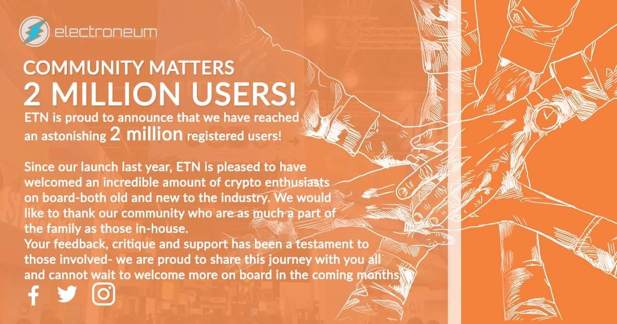 Hello ladies and gentlemen, Electroneum 2 million registered users in less than a year of existence. Boom!