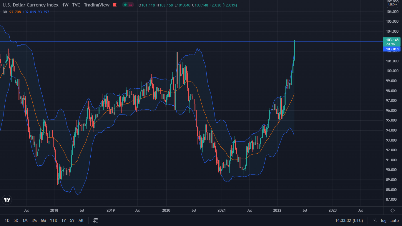 달러 지수 DXY가 강세를 보이는 동안 전체 암호화 시장이 하락합니다.