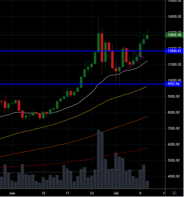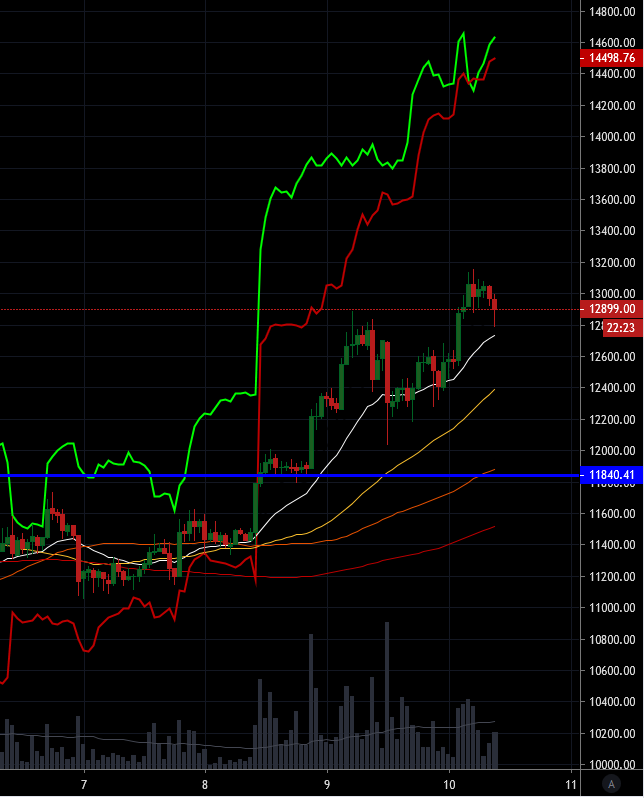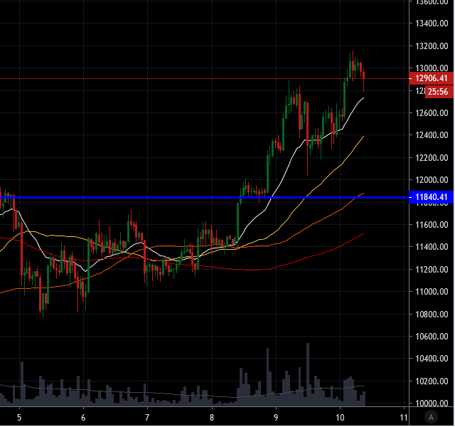 - We are trading at the 12840usd handle at press time. We had tested at over 13000 a few hours ago but have retraced back below this line. This is showing to be mild resistance at the moment it seems.