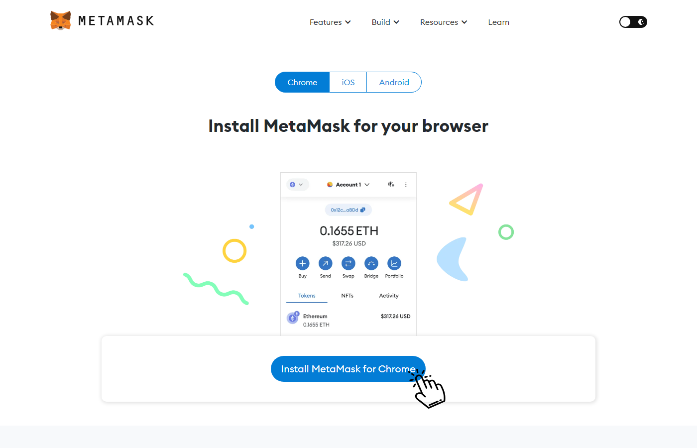 Use Chrome or Firefox to download the MetaMask extension. Click “Install MetaMask”