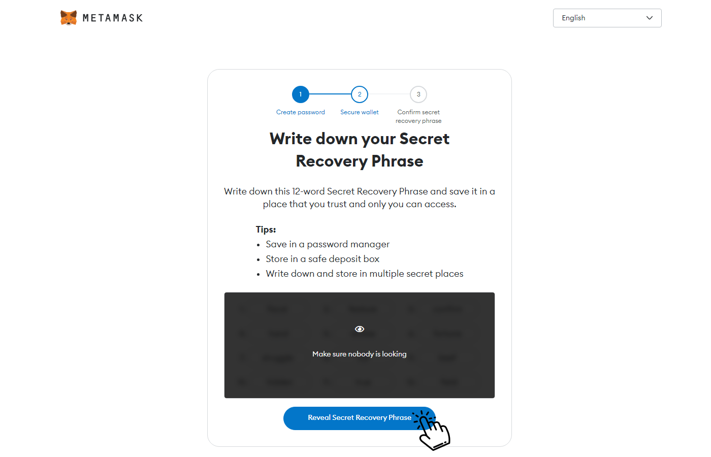 1.4 Unblur secret phrase. Remember or save your secret phrase in secure storage.