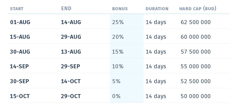 The ICO will be started on 1st of August with 25% bonus. The schedule of ICO is shaown below.
