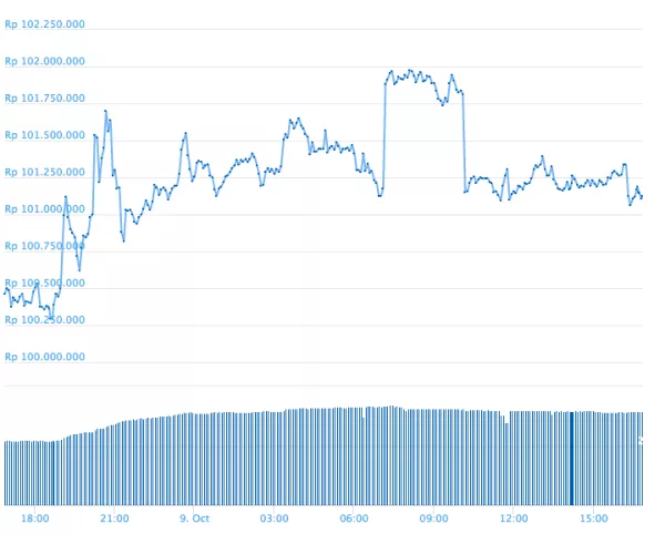 The Bitcoin / USD exchange rate on Monday has risen from $ 100,498,000 to $ 102,618,000 at the support level sentiment.