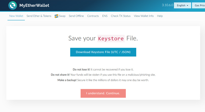 Keystore is a UTC / JSON file that can enter your account, and can be used to recover your lost account. This is one way to enter the account, the second way is to use Private Key. This method is not recommended because if the website you are entering is fake, the web owner can take all the coins you have. Keep your Keystore file well and in a safe place, because your coins may become 'gold' digital.