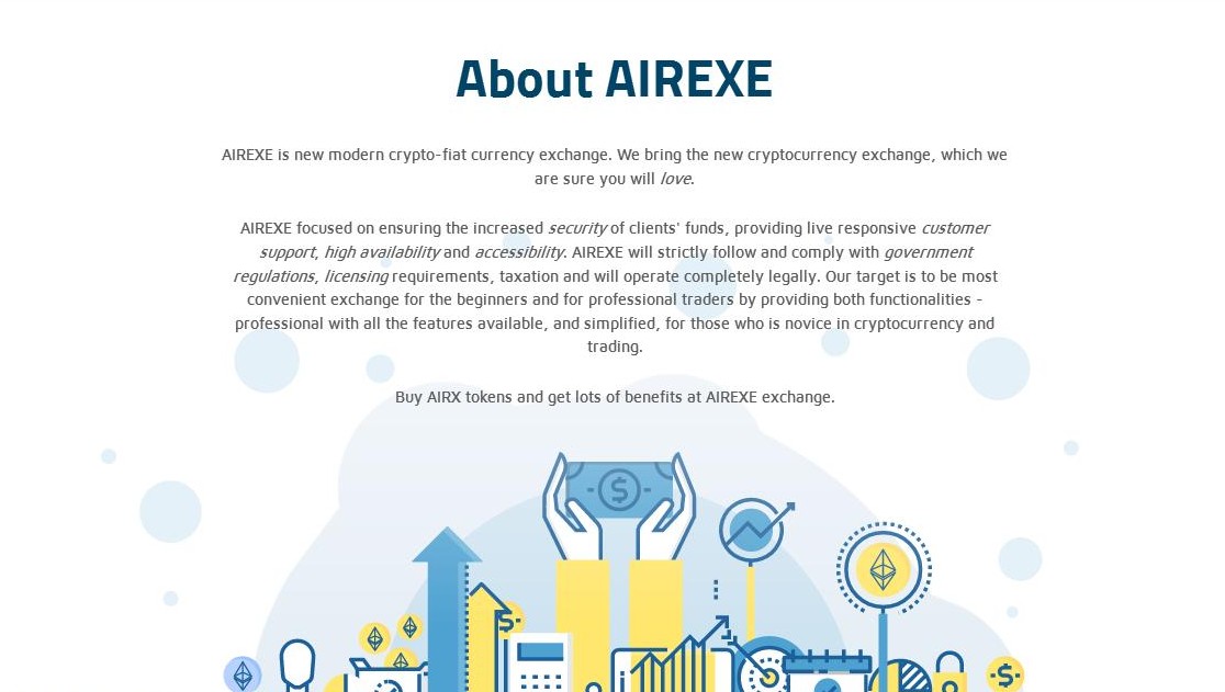 for beginners traders may be confused to choose the right and easy-to-understand stock exchange exchanger and the professionals are eager to be comfortable doing their trading. AIREXE is the perfect solution for beginner traders and convenience solutions for professional traders. here AIREXE guarantees its clients with exceptionally strong security, so traders do not have to worry about security in terms of asset storage. In the AIREXEproject, it supports cryptoes like ICOs, ITOs, TGEs, TAOs or crypto blockchain currencies. curious about AIREXE please you visit the official website.