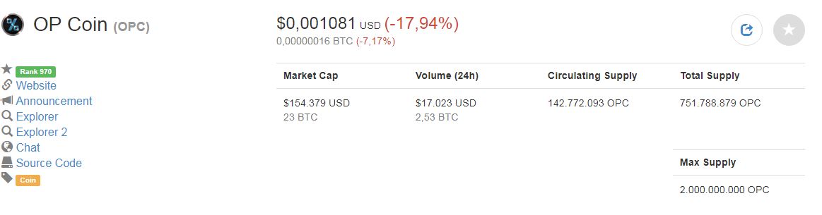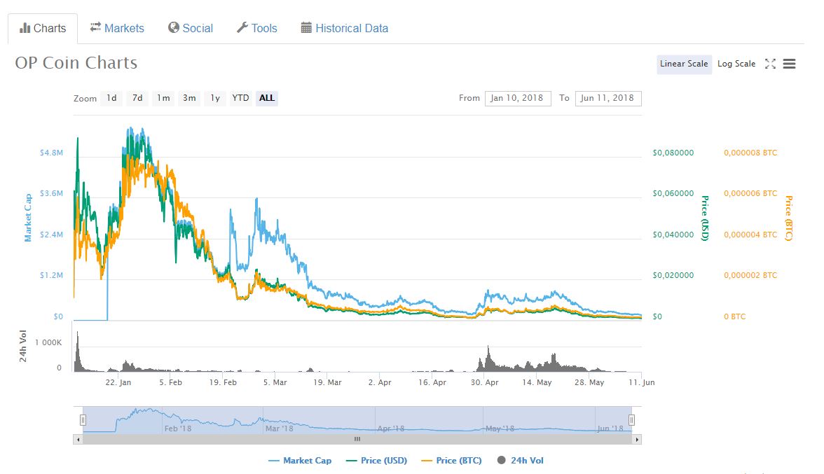 Op coin, which has a hardworking team with continuous wallet updates, caught the highest price of 0.09 USD in January, as seen in the chart. Today, we are at $ 0.001, the lowest level in the last 6 months. Op coin, which is experiencing a full 90-fold decline, can make huge profits at first opportunity ... Op coin is also listed in Shing Cryptopia and Coinexchange. There is a possibility to be listed on a more voluminous exchange at a later time.