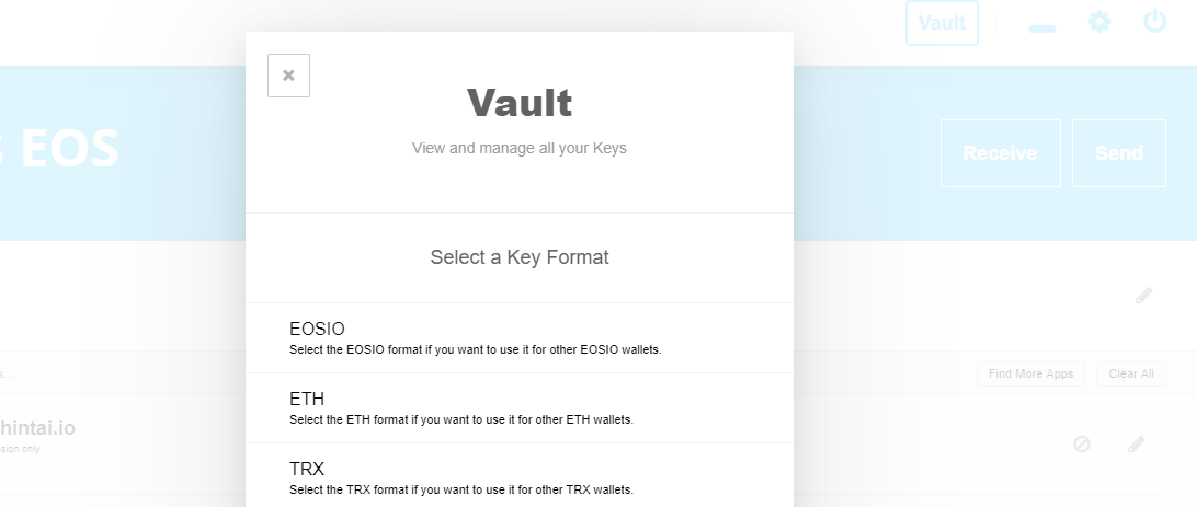 - Select EOSIO as the format