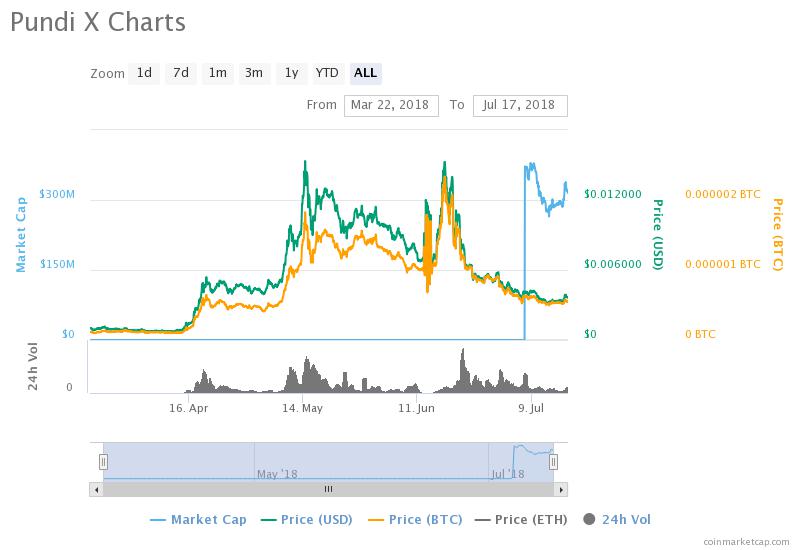 The Pundi X(NPXS) token was listed on Binance exchange on 27-June-2018 06.00AM (UTC). Before enlisting, the price of one unit was 128 Satoshi ($0.007784). Now have a look at this chart. The price touched 616 Satoshi (0.039329) at one point, which is approximately 381.25%.