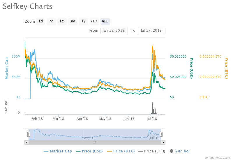 The Selfkey(KEY) token was listed on Binance exchange on dated 27-June-2018 06.00AM (UTC). Prior enlisting, the price of one unit was 128 Satoshi ($0.007784). Now have a look at the chart. The price touched 616 Satoshi (0.039329) at one point, which is approximately 381.25%.