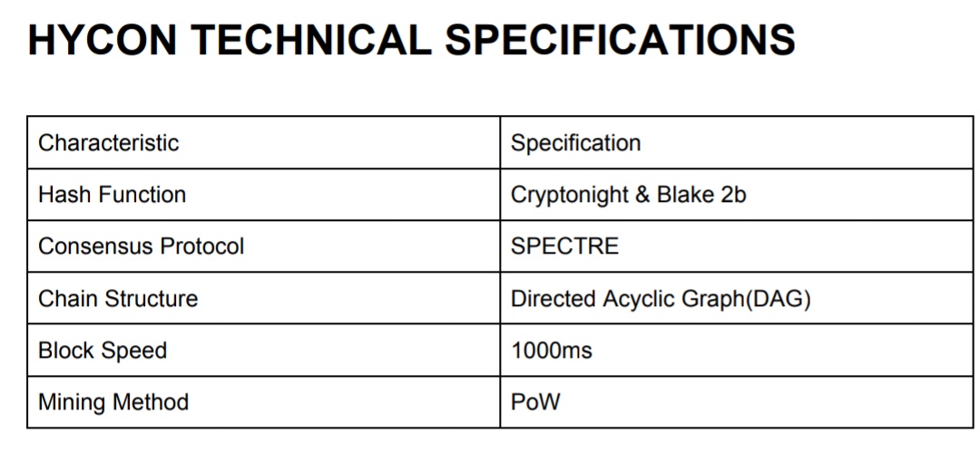 The Hycon Coin (Hyperconnected coin). is a cryptocurrency built on a very fast blockchain and developed by the Infinity Project Team, with the use of "Directed Acyclic Graph" it is cabable of publishing several blocks at the same time which gives it the power to resolve conflicting transactions and block double spends transactions through the spectre consensus algorithm.