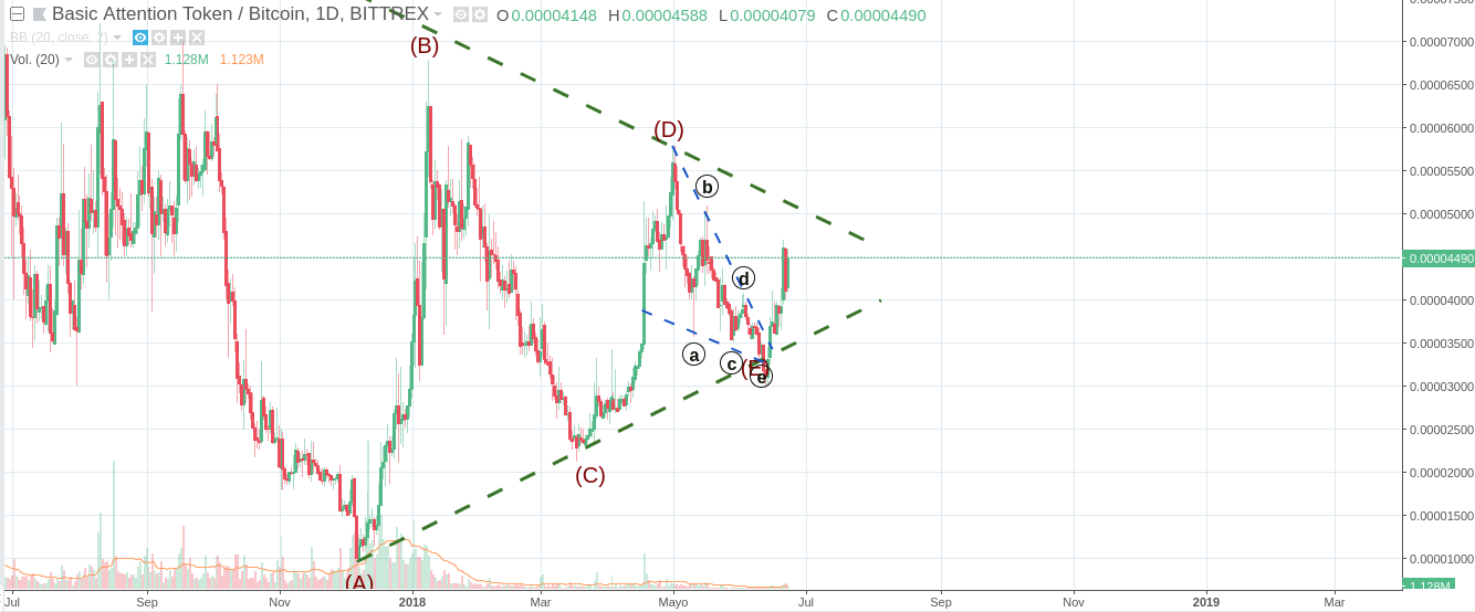 On that post I wrote that, both, the recently announcement of the BAT token implementation on the Brave browser, combined with a promising Triangular pattern would trigger a Bull run, independently of the Market bearish status: