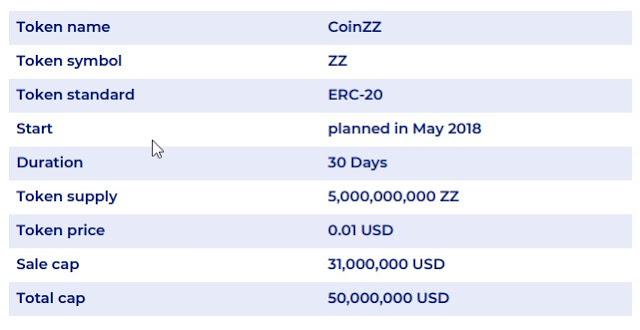 Zenodys plans to run its Token Token CoinZZ sale, starting in May 2018. Token will be distributed to Token holders once the Token sale expires.