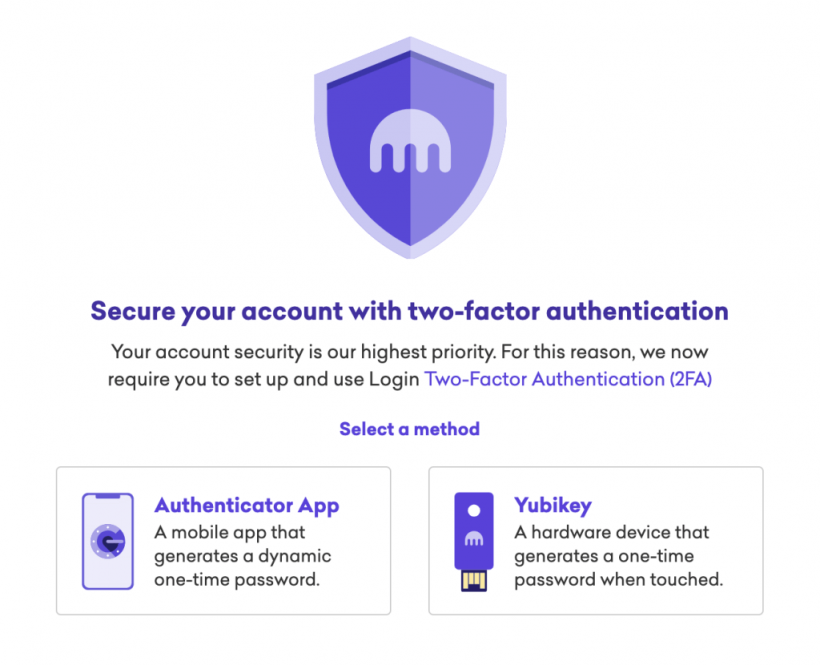 Although the 2FA option has existed on Kraken since its launch in September 2013, the exchange decided to make it mandatory. Two options are available to users: the Google Authenticator app and the Yubikey hardware device.