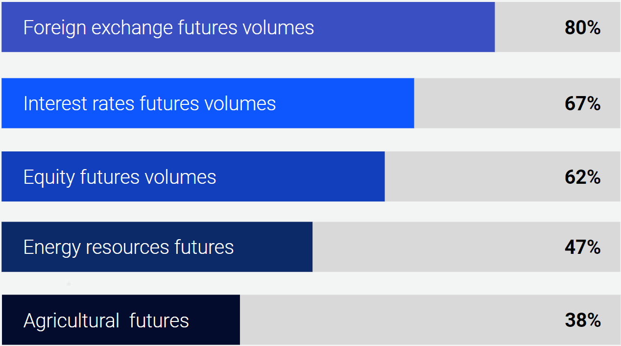 Объемы торговли, создаваемые алгоритмическими торговыми системами на разных финансовых рынках в США