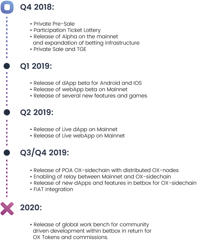 OX is an erc-20 compatible token created on the Ethereum smart contract because of its reliability, availability, transparency, and security. OX is the acronym for Betbox token, this native cryptocurrency created by the betbox ecosystem will fuel the network. It will be used as standard mode of payment when placing bets, staking, voting and for other payments on the ecosystem. To ensure the preservation of OX tokens BETBOX network may burn OX and reward holders with Ethereum in the buyback and burn phase each quarter of the year.