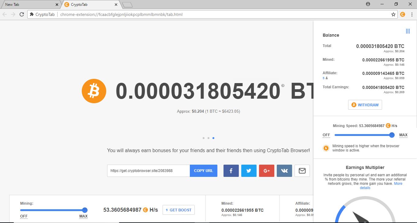 FREE SOFTWARE BITCOIN MINER (Crypto Tab)