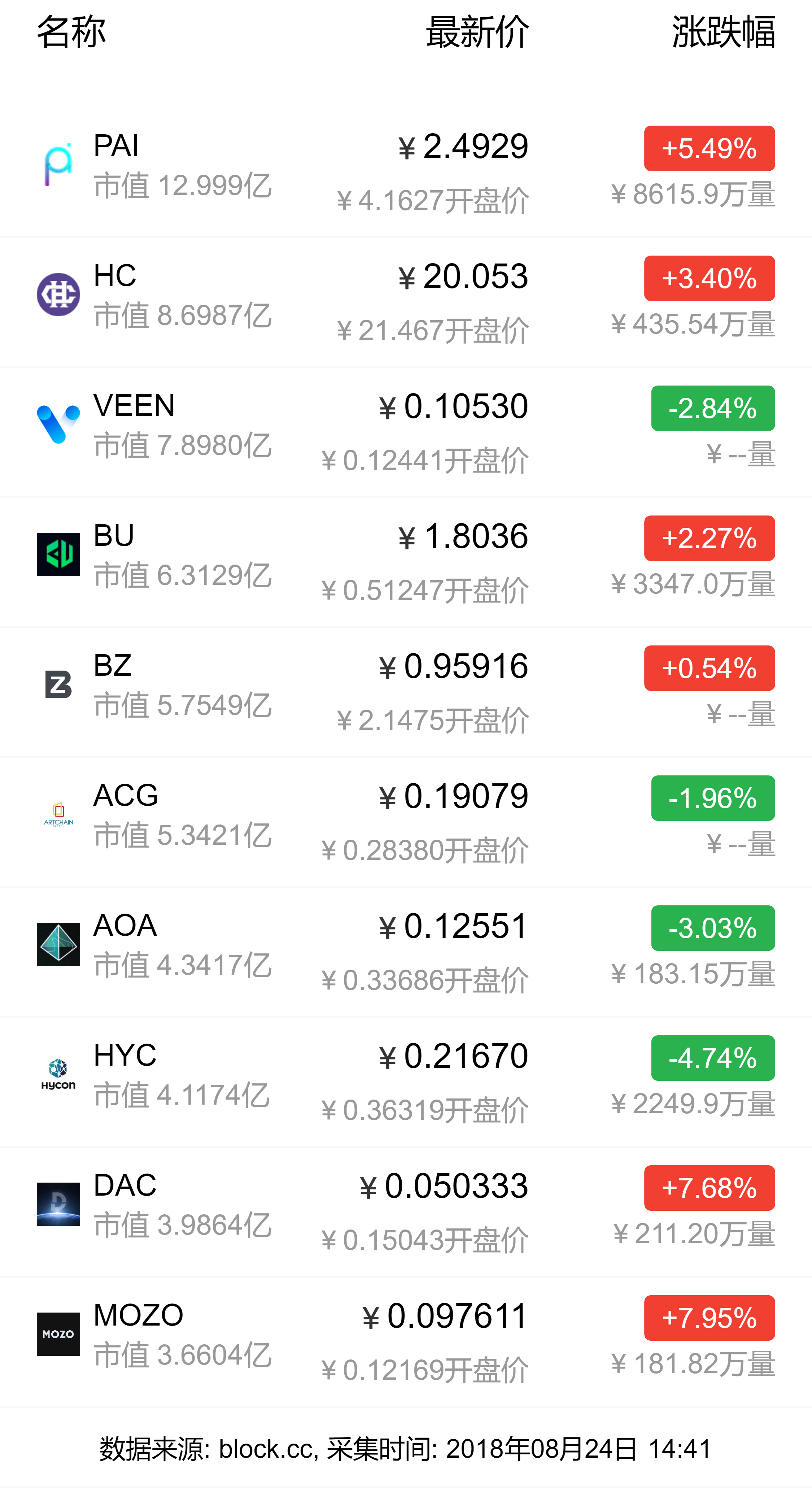 新币24H行情
