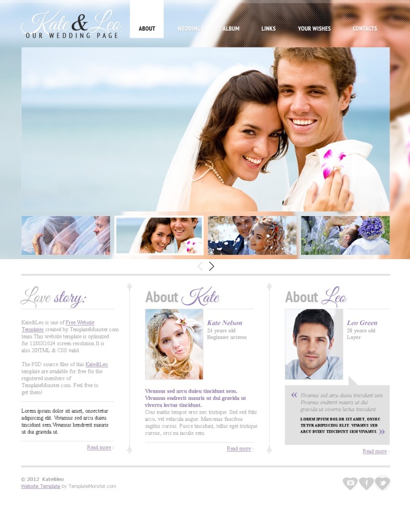 Download a free website template for Wedding Page, designed in clean and clear style, with all PSD sources included. 🕯