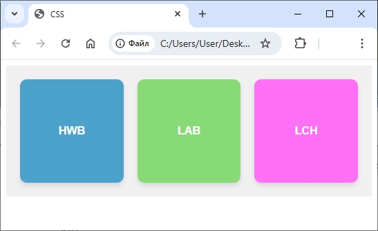 Для наочності наведу приклад із трьох блочних елементів, стилізованих із використанням нових колірних моделей:
