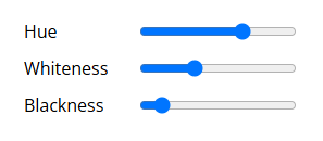 - Whiteness: скільки білого додається до кольору, вказується у відсотках, при значенні 0% — білого немає.