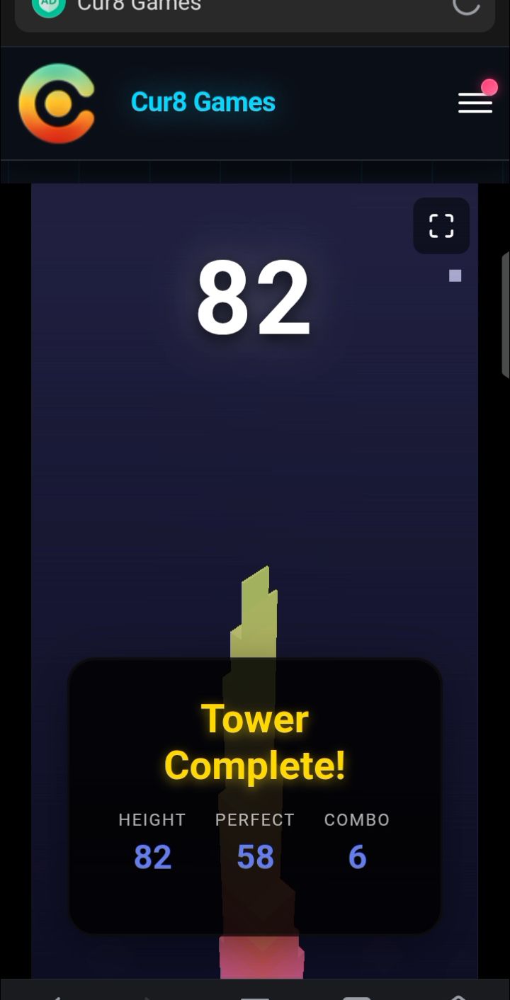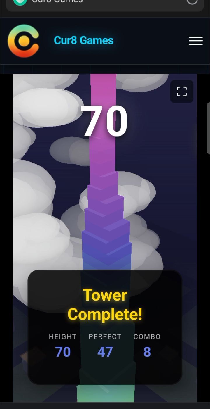I tapped on the game menu and chose to play the Sky Tower game as the first game I saw there. The trick was to keep my hands steady and I tried not to blink because at some point the sliding blocks were coming too fast. I earned combo bonuses.