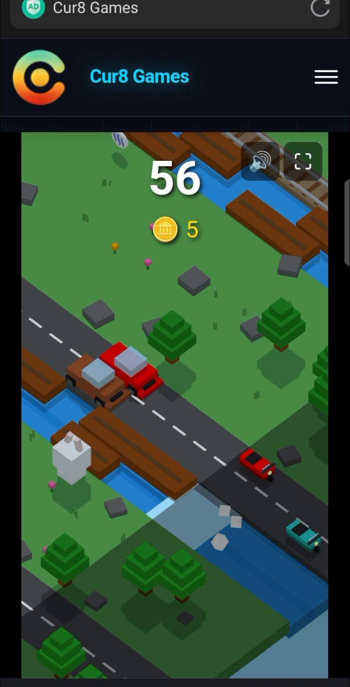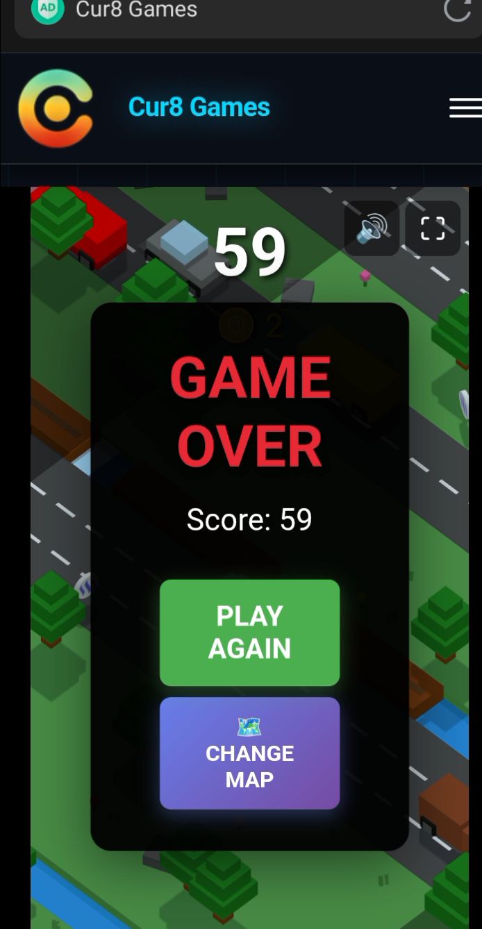 Next, I proceeded to play Blocky Road, a game where I had to go through a road and dodge cars and trains. I played Blocky Road for 8 straight rounds. My first round was very decent because I scored 59 points.
