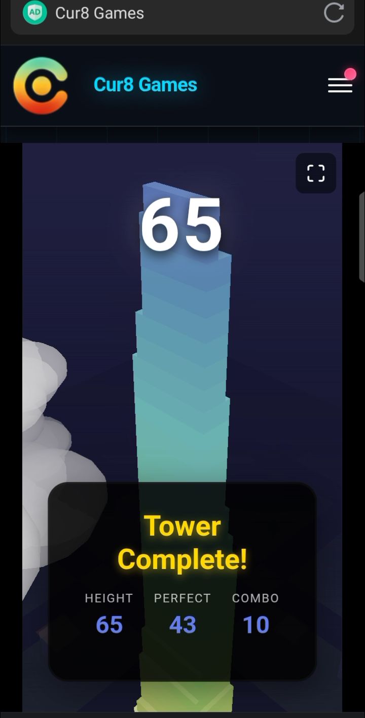 My fourth game proved to be poor as I only managed to complete the tower up to 65.